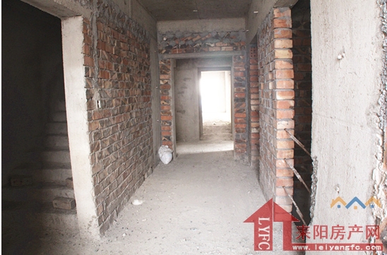 电梯过道,2梯四户的设计模式。31层的这栋电梯尚未安装,包括墙壁也还未施工完毕。