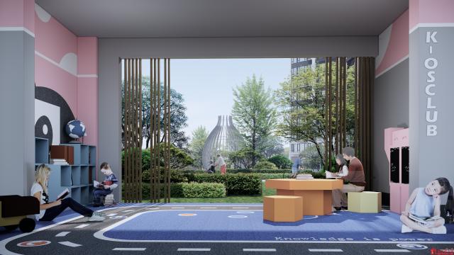 园林内带来全龄共享的山水间有氧生活,配备全龄儿童乐园、林下休闲空间、老年健身活动平台、景观会客厅、活力健身空间、架空层休闲空间及宠物乐园,全区有氧跑道环绕,同时配备有户外吧台、艺术构架及阳光草坪,让美学与生活功能相遇,关注生命循环,构建悦心全龄生活圈。