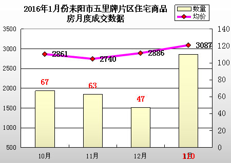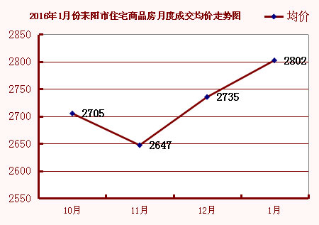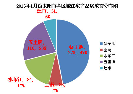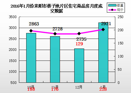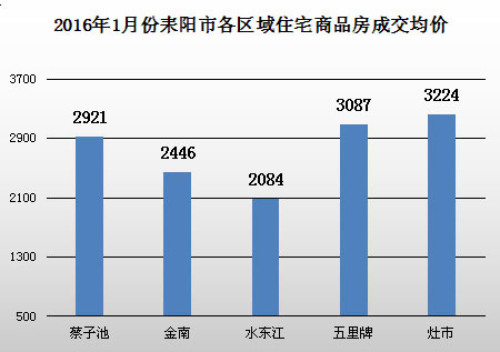 2016年1月,耒阳市住宅类商品房共成交486套,各区域成交分化依然明显,蔡子池片区继续独领风骚,另外五里牌片区、水东江片区进入销售前三甲,蔡子池片区以228套位居首位,遥遥领先其他区域;五里牌片区以110套位居第二位;水东江片区以84套位居第三位;金南片区和灶市片区分列第四、第五,受耒阳市网络房交会影响,本月整体成交量大幅上涨。 | 2016年1月份,耒阳市商品房成交均价为2802元/㎡,本月耒阳各区域均价整体呈上涨趋势,均价最高的是灶市片区3224元/㎡,其次是五里牌片区3087元/㎡,水东江片区因悦龙湾的热销,提高整体均价,2084元/㎡。 | |