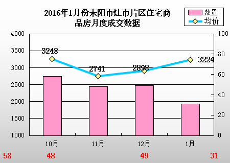 2016年1月,灶市片区住宅商品房成交31套,交易均价为3224元/㎡; 本月成交量最高的是外滩公馆,成交14套,其次是白沙小区东区、亚太·凤翔名城成交各6套。 |