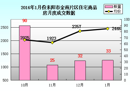 2016年1月,耒阳金南片区住宅商品房成交33套,成交均价为2446元/㎡; 此片区成交量最高的楼盘是台北帝宝,成交10套,位居第二的是和谐花苑,成交6套,位居第三的是南城一品,成交5套,因金南片区没有新楼盘开盘,导致此楼盘近几个月销量一直平平,没有太高的起伏。 |
