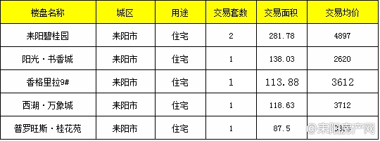 数据统计来自耒阳房产网