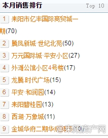 二、截止至8月19号(星期六),8月楼盘销售排行:
